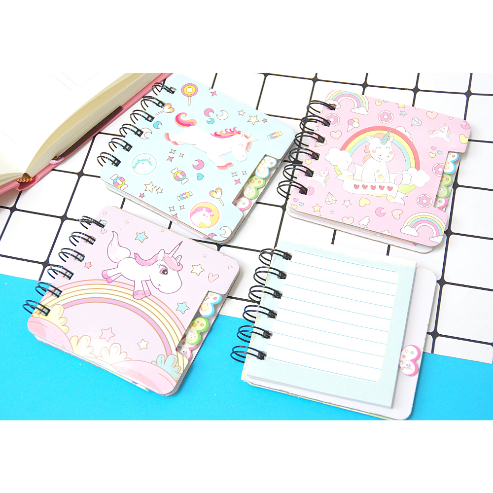 Sổ Tay Ghi Chú Gáy Lò Xo Phân Trang Giấy Nhiều Màu Hình Unicorn Kích Thước 9x10cm