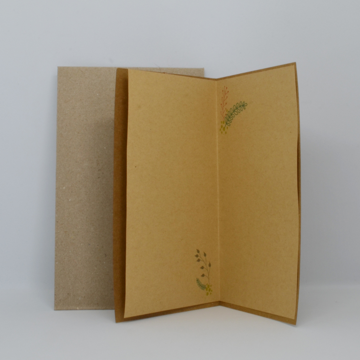 - Quy cách: Thiệp 2 lớp, bìa thiệp (giấy kraft) và lớp lót (giấy kraft) để viết lời chúc