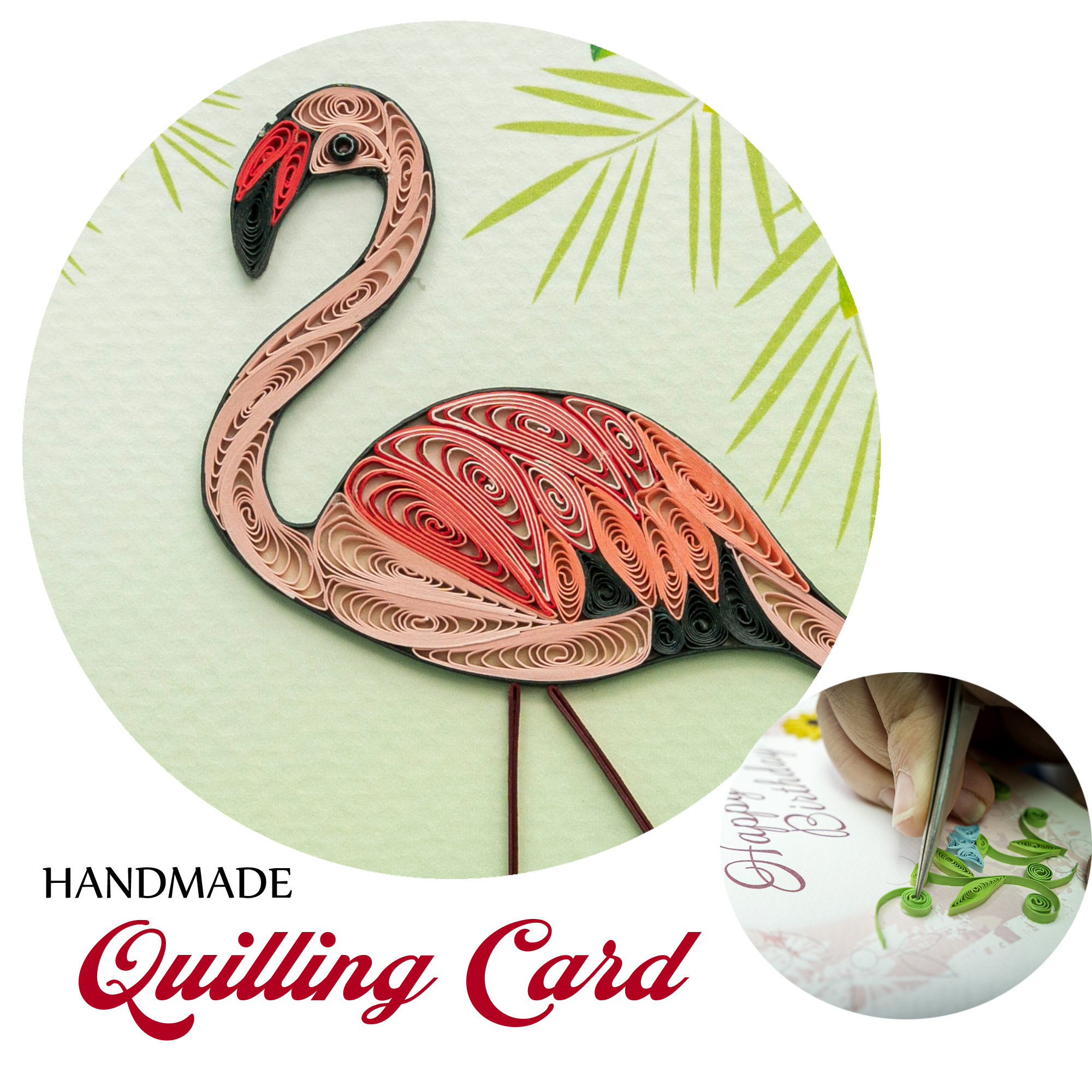Thiệp Giấy Xoắn Chủ Đề Chim - Hồng Hạc - CNB1511