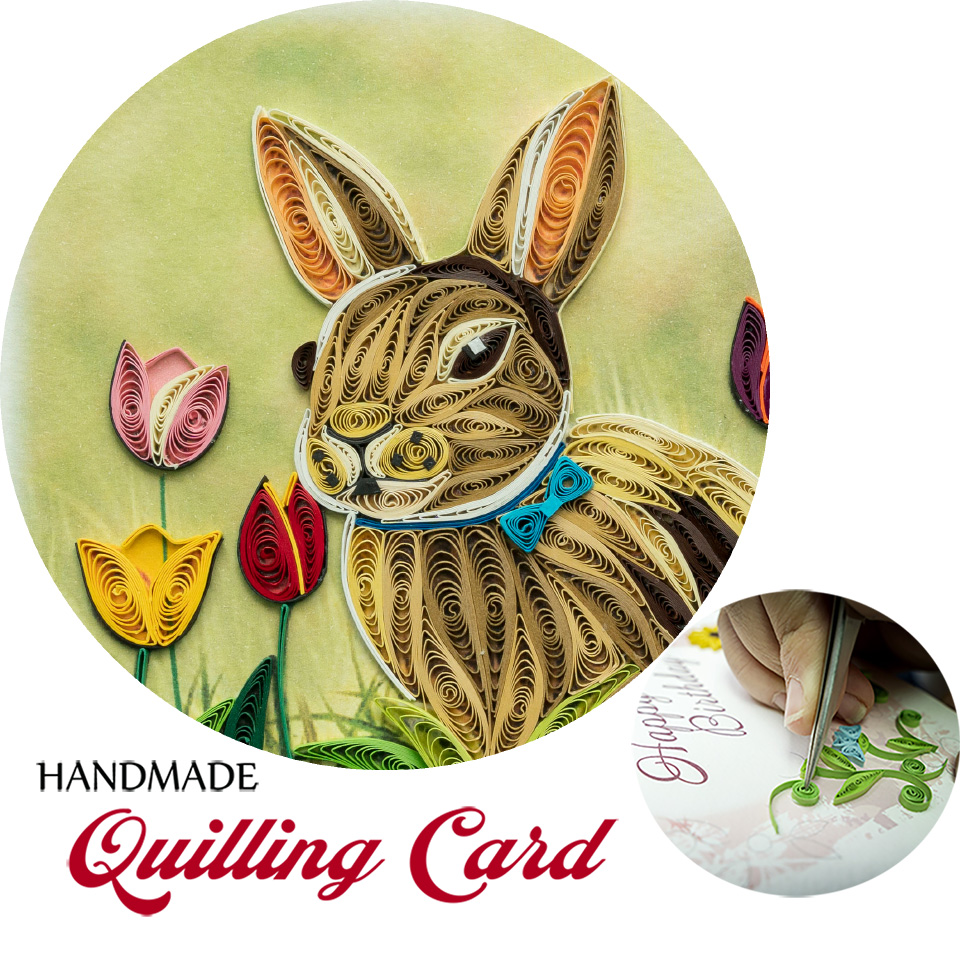 Thiệp Giấy Xoắn Động Vật - Thỏ Và Hoa - NCC-A1502