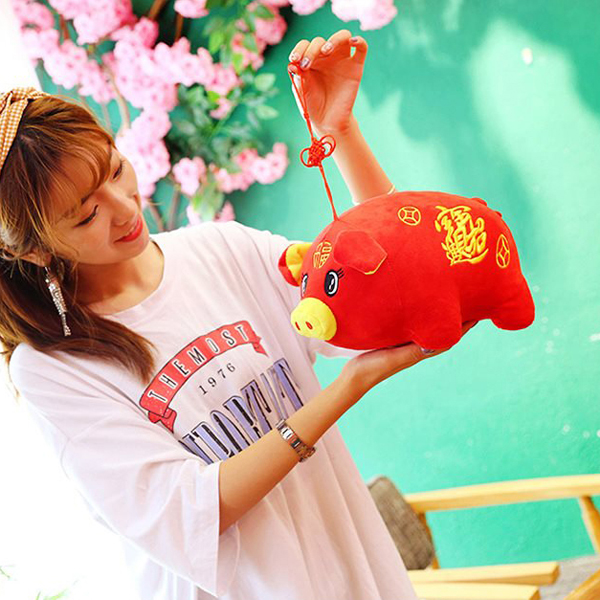 Thú nhồi bông heo tết phát tài (35 cm) TNB201 - Đỏ Phối Vàng