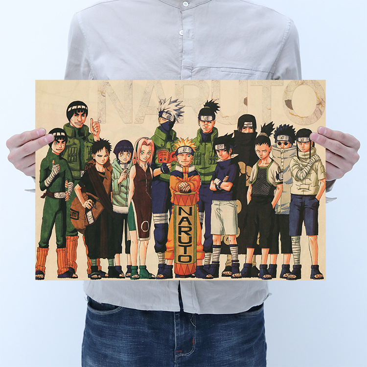 Tranh Kraft Đại gia đình NarutoChất liệu: 150 gram giấy kraft vàngQuy trình: In độ nét cao trên máy ép Heidelberg của ĐứcKích thước: 50.5*35cmTrọng lượng tờ rơi: 53 gram