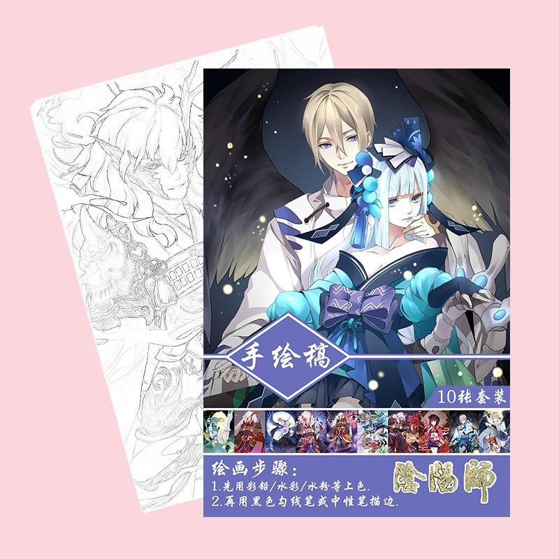 Tranh tô màu Âm dương sư tập bản thảo phác họa anime manga chibi
