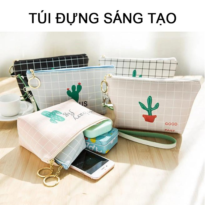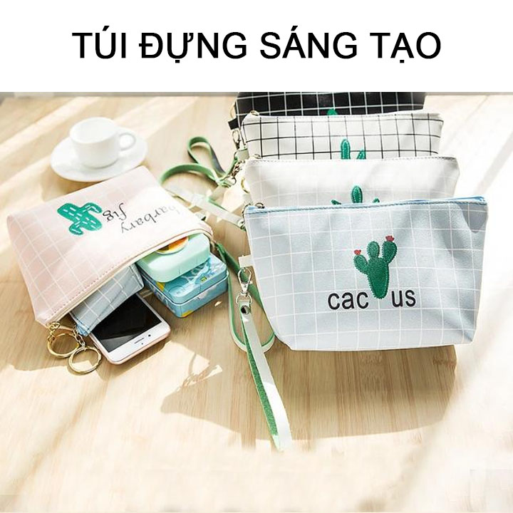 Túi đựng bút đựng điện thoại sáng tạo in hình xương rồng