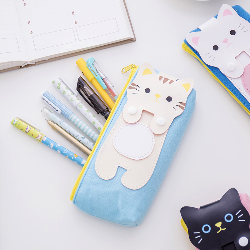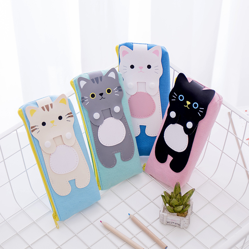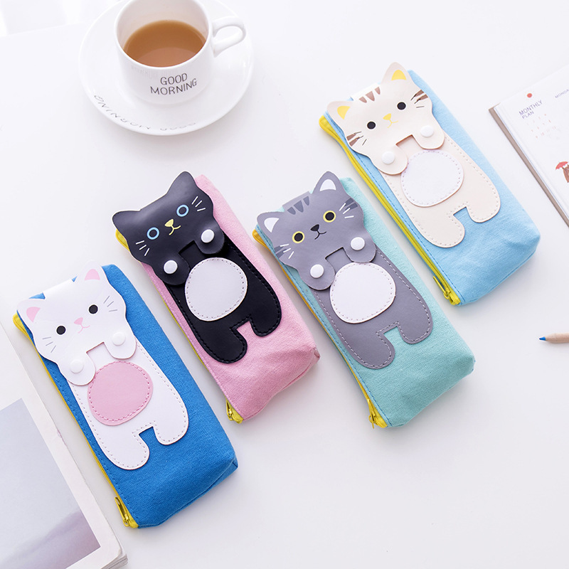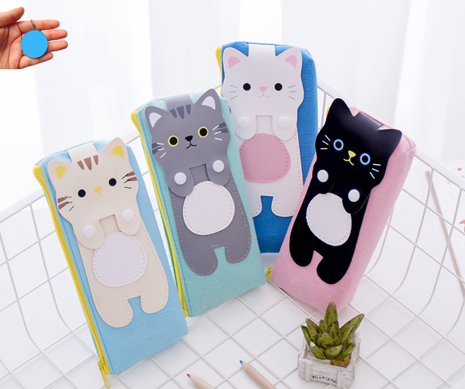 Túi đựng bút hình mèo tặng kèm móc khóa mica tròn
