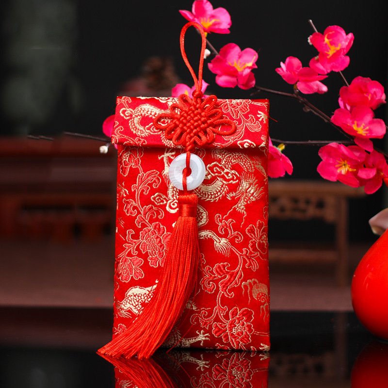 Túi gấm cổ trang lì xì đỏ có gắn đồng tâm kết mẫu ngẫu nhiên - Sản phẩm Thích hợp làm quà tặng cho bạn bè và người thân - Sản phẩm đang hot trên thị trường và được các bạn trẻ vô cùng yêu thích. -...