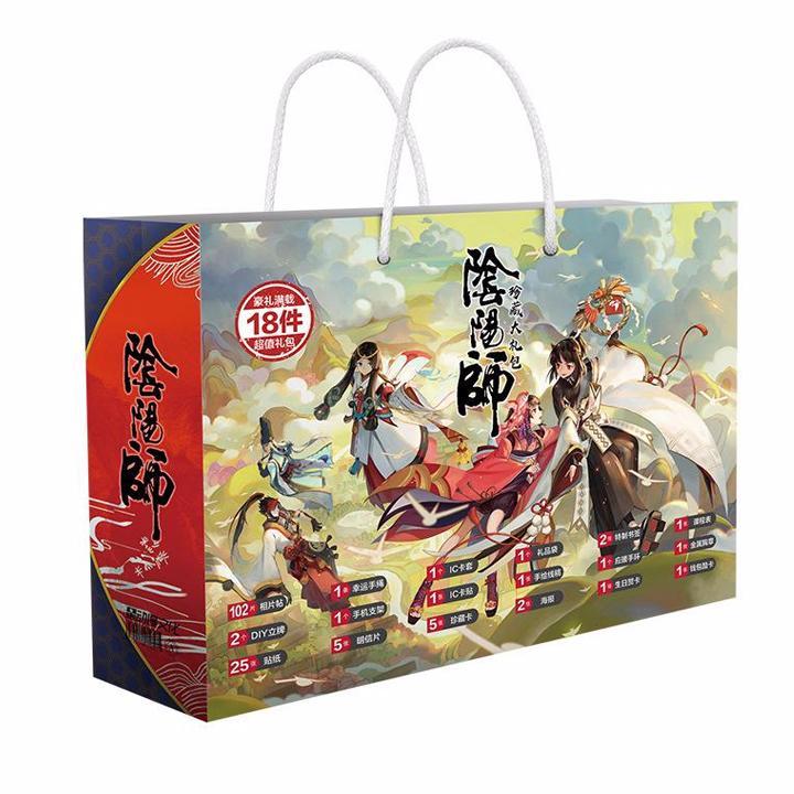 Túi quà anime chibi hình chữ nhật Âm dương sư tặng thẻ Vcone - 1 túi xách- 2 thiệp to- 1 poster- 1 banner- 1 mini photobook- 1 thời khóa biểu- 1 ảnh tô màu- 8 tấm postcard- 1 tấm sticker dán sổ- 1...