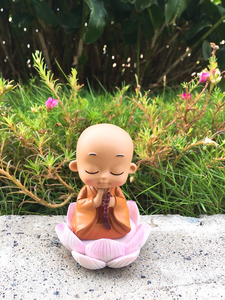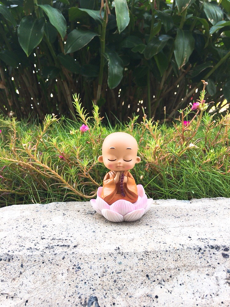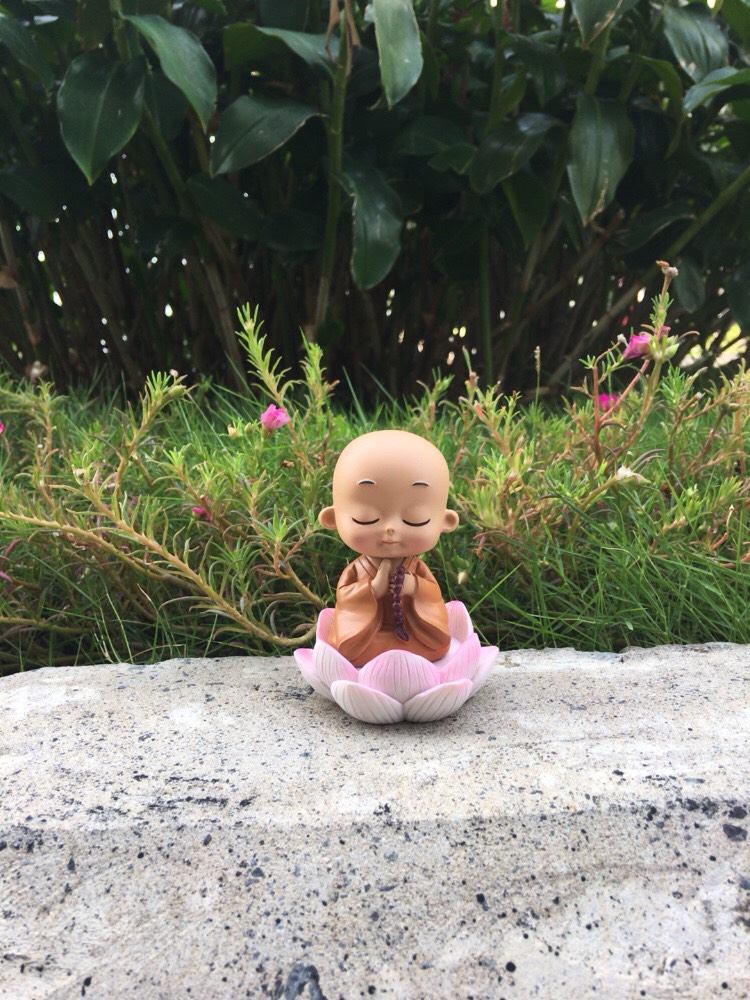 Tượng chú tiểu vàng ngồi đài sen đầu gậtChất liệu: Nhựa thôngKích thước: ngang 6cm x rộng 7cm x cao 9cmMàu sắc: áo vàng nâu